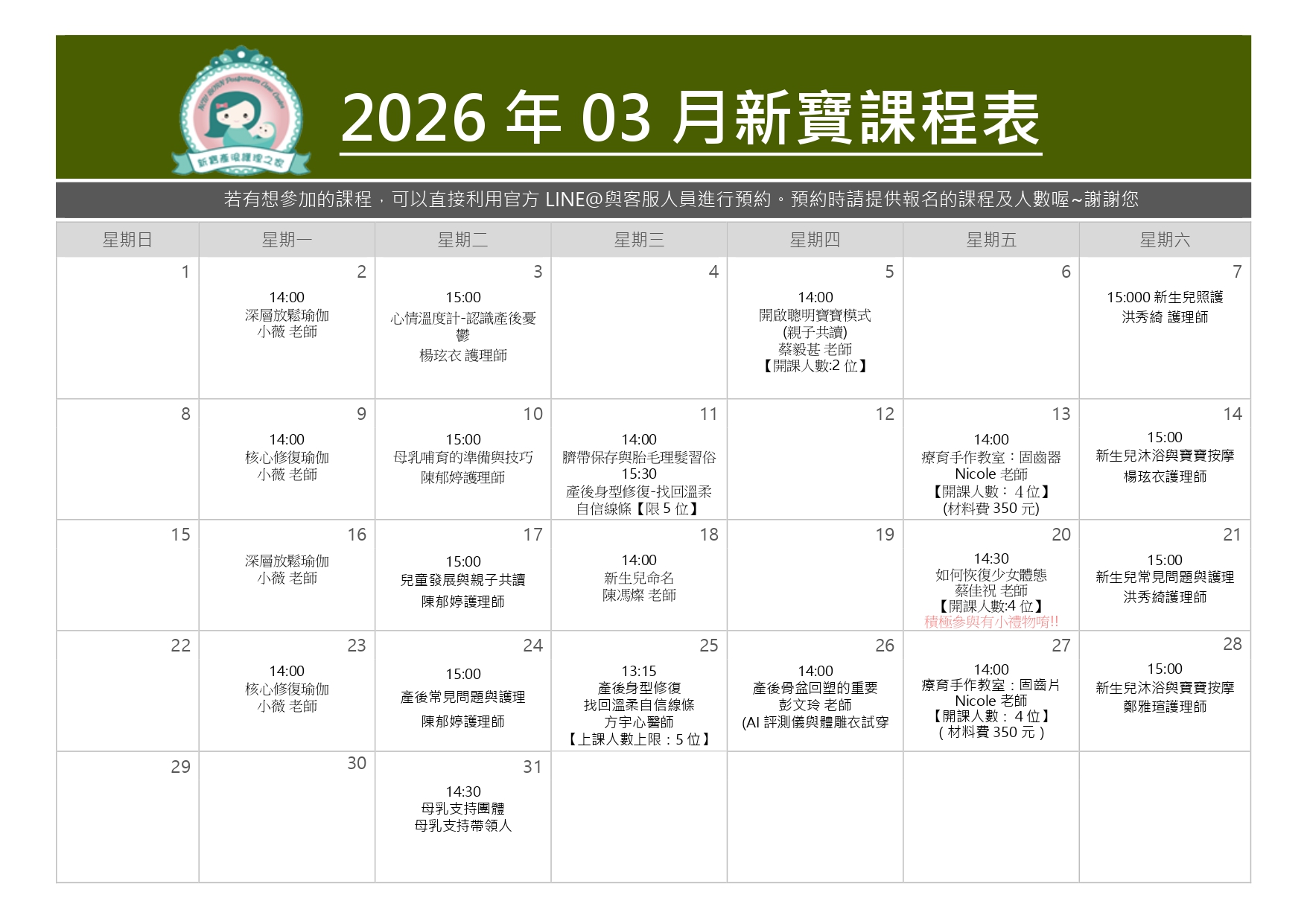 115年3月館內產後團體課程