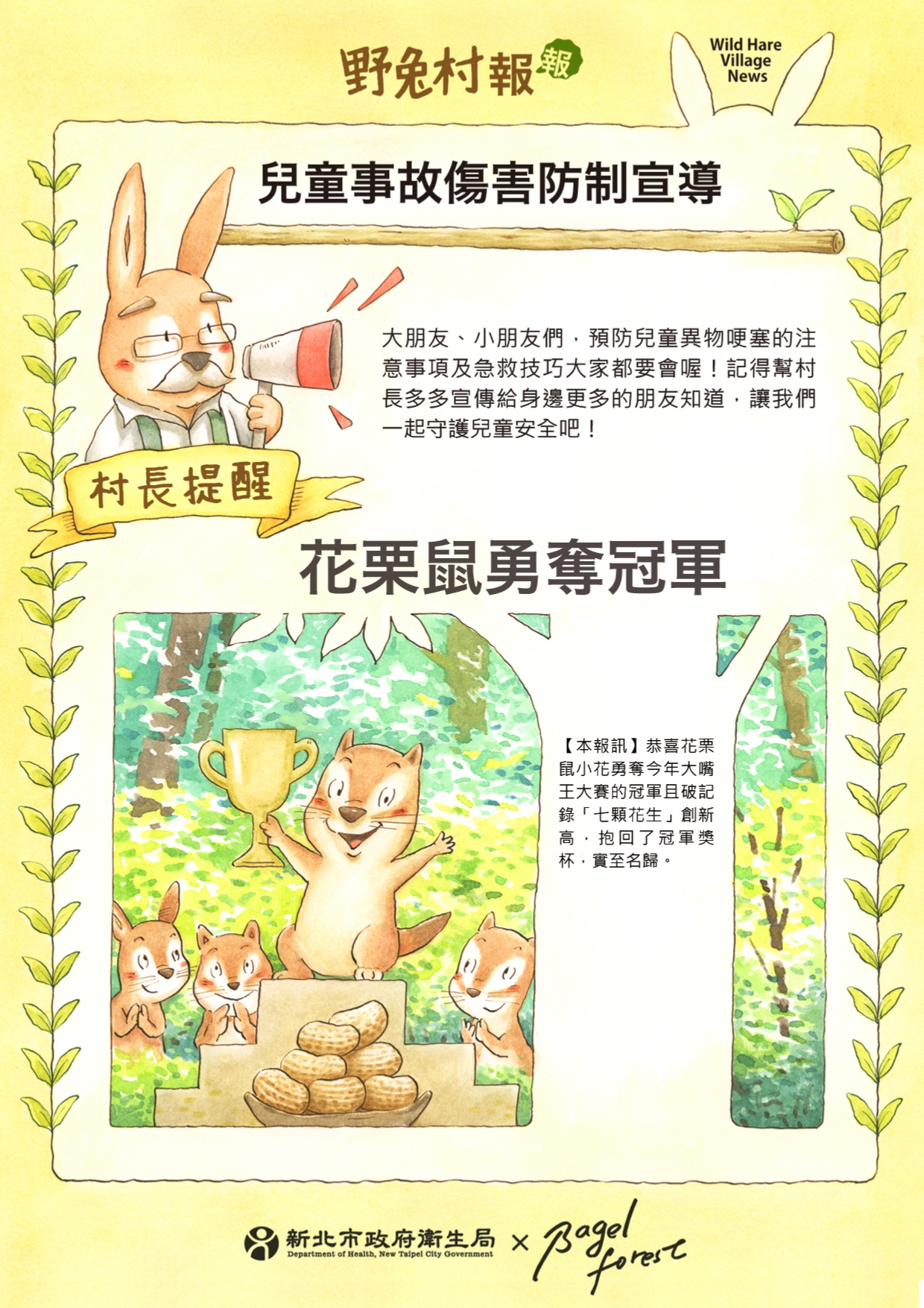 期能透過達人包提升照顧者對嬰幼兒安全意識,以使嬰幼兒得以健康成長,歡迎多加利用"野兔村報報-預防兒童異物梗塞達人包"